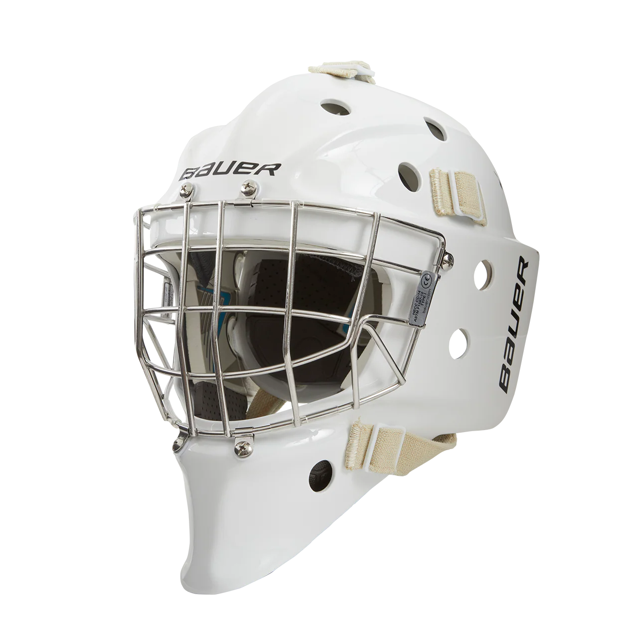 The Bauer 950 Goalie Mask blends heritage design with modern performance enhancements to deliver elite-level comfort, protection, and a timeless profile. Its PowerCore composite shell offers lightweight yet durable defense while minimizing vibration and hand‑ringing on impact. Inside, the advanced AirFlow liner combines Poron XRD XL in the cheeks and crown with IX Foam in the jaw and backplate to absorb impacts and cradle your head comfortably. The helmet wraps securely around the skull thanks to an occipital support system, while the Thermocore zero‑sweatband and five‑point Pro Harness fine‑tune fit and ventilation for long, demanding games. Its lightweight stainless steel cage features an enhanced vision‑line design for better sight angles. This is a goaltender helmet that honors a storied legacy while upgrading performance and comfort on every shift.